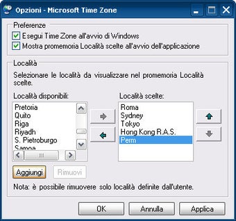 Microsoft Time Zone offre anche una funzione di impostazione rapida del fuso orario: comodissima quando vai all'estero e desideri cambiare l'ora del tuo PC. Unico problema: funziona solo su Windows XP e con Microsoft .NET Framework 1.1.
